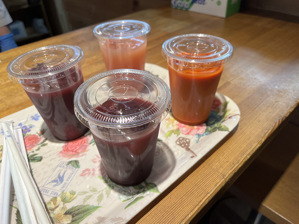 アサイージュース、グアバジュース、野菜ジュースをチョイス。