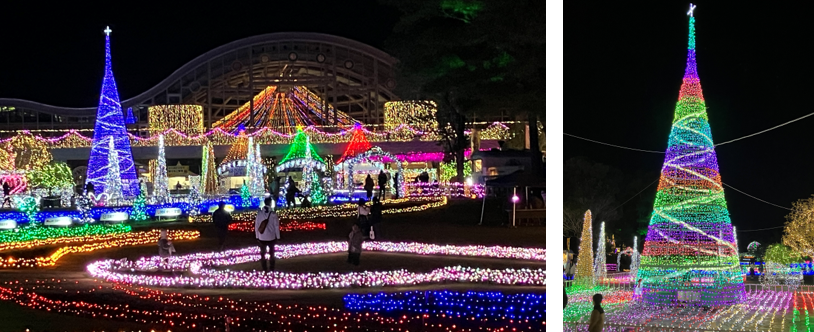 「春」「夏」「秋」「冬」それぞれをイメージした音楽に合わせてイルミネーションが次々と変化する「音楽とイルミネーションの饗宴」や、エリアごとに四季をイメージした花とイルミネーションのコラボがお楽しみいただけます。