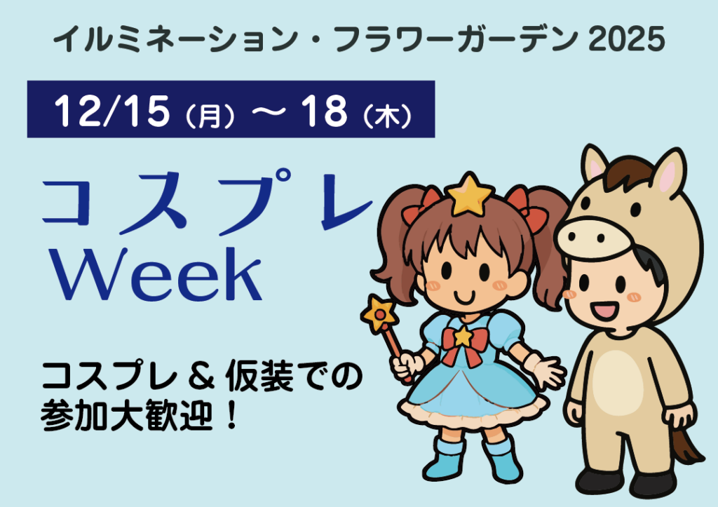 毎年皆様にご好評いただいている「イルミネーション・フラワーガーデン~音楽とイルミネーションの饗宴~」を、本年度も開催いたします。