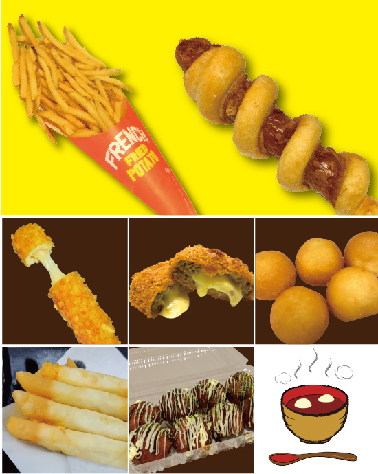 夢花館を出てすぐのテントでは、大人気のフライドポテトをはじめ、ソーセージロールやチーズドッグなど、歩きながら食べられるメニューがたくさん!
