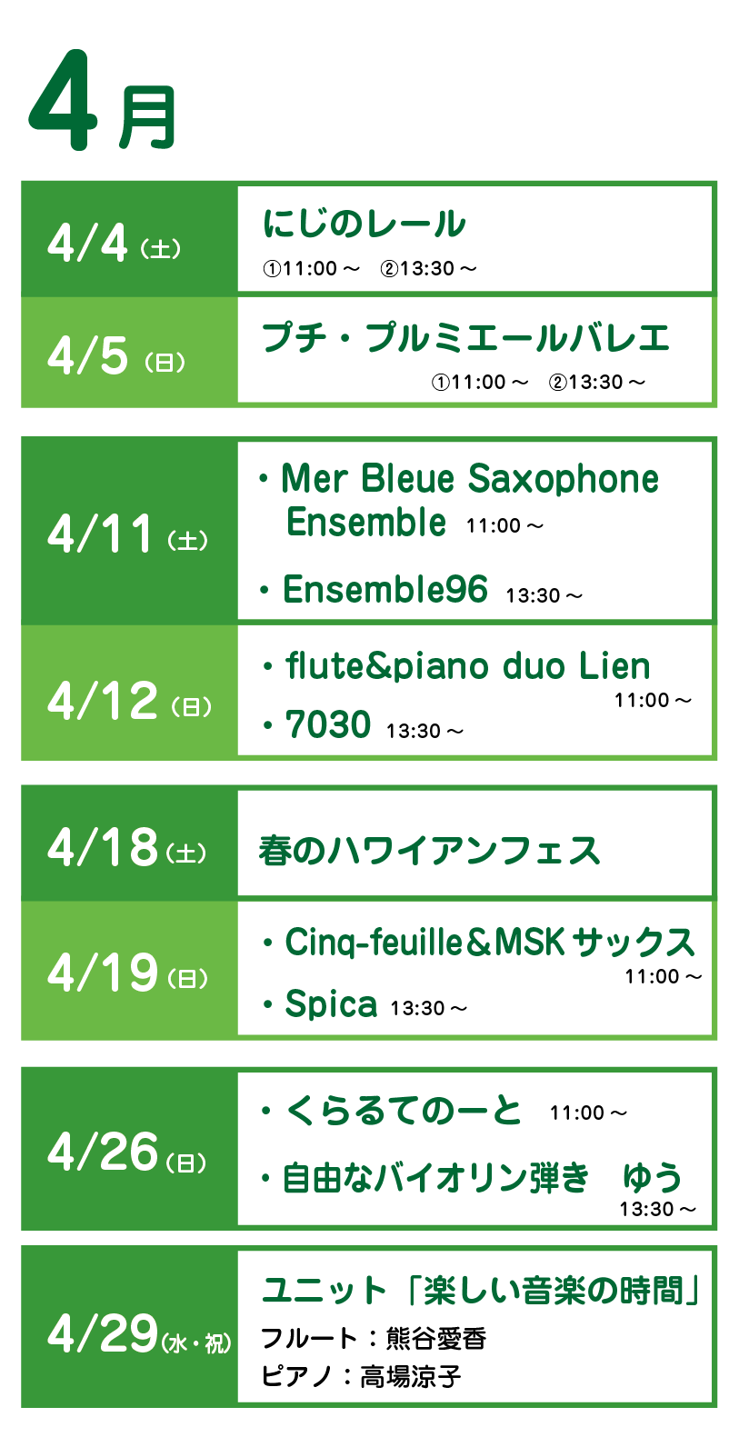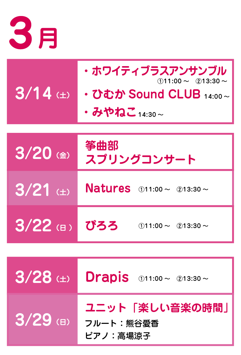 春のフローラル祭期間中、土日祝日に音楽会を開催!