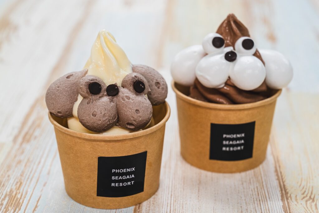 かわいいワンちゃんのアイスや人気のハンバーガー。