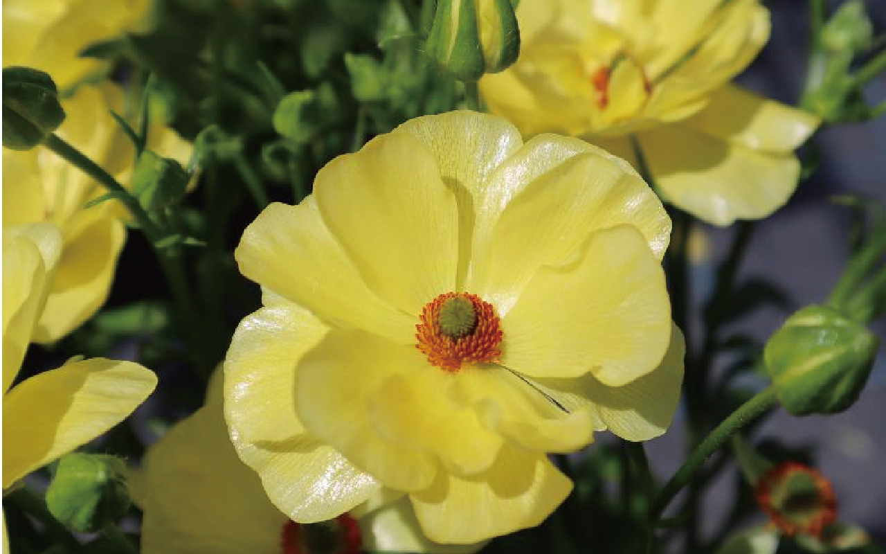 日が当たるとキラキラと光って見えるラナンキュラス’ラックス’をメインにした寄せ植えをつくります。春の訪れを一足早く感じてみませんか。