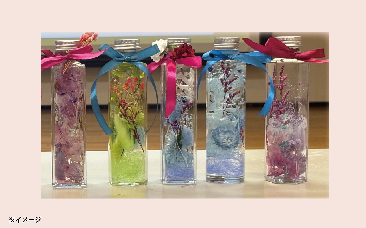 ドライフラワーを使ってオリジナルのハーバリウムをつくる講座です。