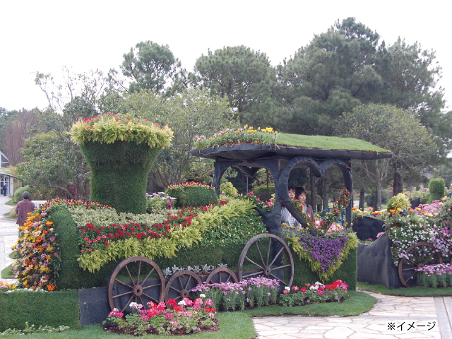春の花々で彩られた大きな汽車が交流広場に登場します。